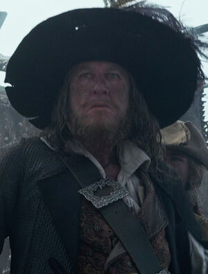 Captain Barbossa made his first appearance in Pirates of the Caribbean: The Curse of the Black Pearl, where kidnaped Elizaberth Swann, beleving her to be related to an old pirate friend of his. Afterwards, he fought against Captain Jack Sparrow once again, only to traid Eleizaberth over for Wilaim Turner Jr. and later went back to a cave. He sent his army of the undead to fight the British army and later fought against Jack, only to die thanks to Willaim.