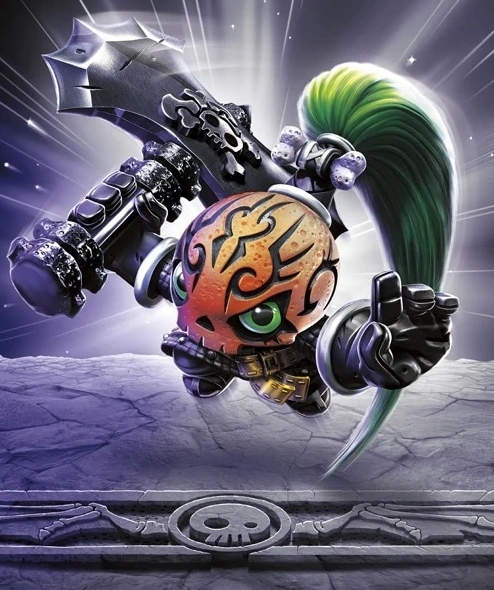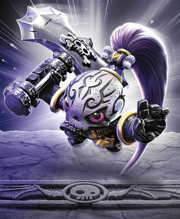 The only thing that ever mattered to Chopscotch was mastering her weapon of choice, the giant axe, while rocking out to her favorite musical idol, Wolfgang. It never bothered her that she was short in stature or that all of the other ghouls in the Underworld laughed at the way she spoke in rhymes as she made up her own lyrics to Wolfgang’s guitar jams. So when Wolfgang joined the villainous Doom Raiders, she was devastated. But instead of letting it destroy her, she chose to put her axe skills to good use, and fought Wolfgang and his Moon Goons when they attempted to curse her entire town during an evil concert. Her willingness to stand up to her long time hero came as a surprise to everyone, and soon all of the villagers were speaking in rhymes in her honor. Soon after, she met Master Eon, who was so impressed at her fighting abilities and positive outlook that he recruited her as a Sensei for the Smasher Class. Now she teaches new Skylanders how to fight... and how to rhyme!