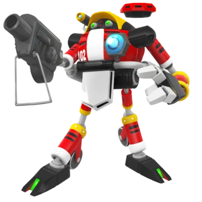 E-102 Gamma was created by Dr. Ivo "Eggman" Robotnik in Sonic Adventure, as part of the E-100 Series. It went to fight against E-101 Beta and became a favoite of Eggman's. It later went on a mission, along with other models after it to look for Froggy. E-102 Gamma later found itself in the past, meeting Tikal. It gave Eggman the frog and later went to the prison, only to free Amy Rose. E-102 Gamma later fought against Sonic the Hedgehog and Miles "Tails" Prower, only for Amy to stop the fighting. After the Egg Carrier was destroyed, E-102 Gamma found itself at the Mystic Ruins and went to look for the other E-100 series so that it could destroy them. E-102 Gamma was later destroyed after defeating The rebuilt E-101 Beta. But eventually, Gamma rebuilt by unknown reason for his return.