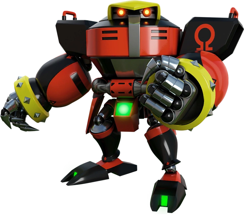 E-123 Omega made his first appearace in Sonic Heroes, where he would fight against Shadow the Hedgehog, only for Rouge the Bat to make the three team up and so they did. The three would fight against varioud Egg Pawns and Badniks as well as rival teams such as Team Sonic, Team Rose and the Chaotix, only to team up with them afterwards to fight against Metal Sonic.