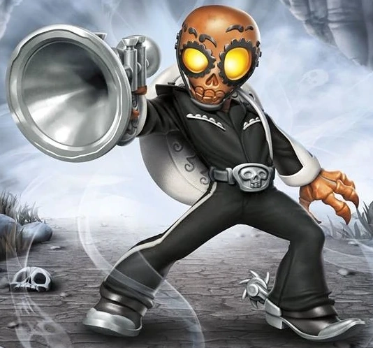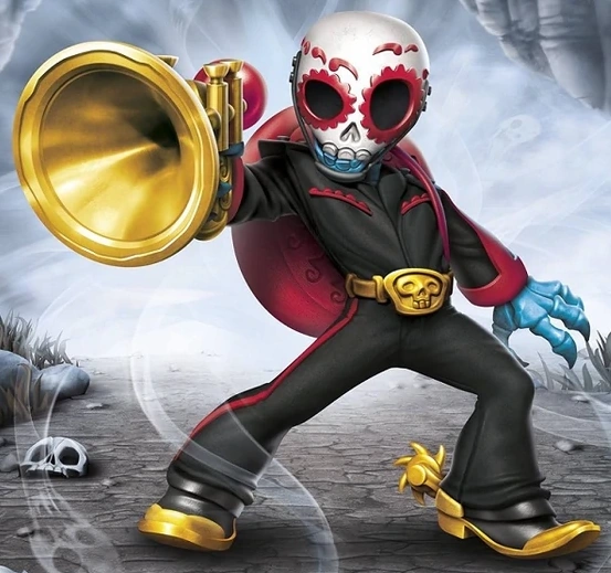 Despite being undead Fiesta had always been the life of the party. He was once the head member of a popular mariachi band in the personal court of Count Moneybone, who all undead citizens respected immensely. In his spare time, Fiesta and his bandmates played music for all of the new arrivals that entered the Underworld. However, a day came when the new arrivals were actually several Skylanders, who had come on a mission to stop Count Moneybone from unleashing a robot army on all of Skylands. Fiesta then realized that he, like so many others, had been fooled by the evil Count into thinking he was kind and generous – not the vengeful monster he truly was. Unbeknownst to the Skylanders, Fiesta and his bandmates helped to distract the robot army so they could infiltrate Moneybone’s mansion and put a stop to him. Even though the Skylanders were unaware, this act of bravery and defiance did catch the attention of Master Eon, who recruited him at once.