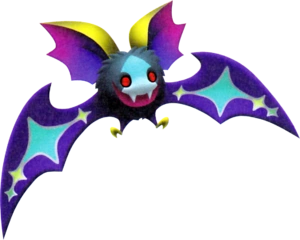 The Komory Bat first appeared in Kingdom Hearts 3D Dream Drop Distance, where they would go off to help both Sora and Riku to fight against the Nightmare Dream Eaters. Their are also Nightmare Komory Bats that would go off to fight against Sora and Riku.