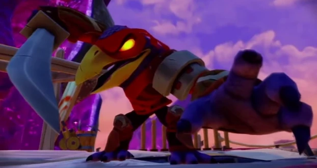 Tae Kwon Crow was once the leader of a villainous band of air pirates in Skyhighlands. But pirating was never his true passion. All that really mattered to him was stopping anyone that “dared” to do anything that he deemed out of character. If a cake maker “dared” to make a pie instead, he would put a stop to it. If an ordinary sheep “dared” to baaahh longer than normal, he would end that nonsense right then and there. Tae Kwon Crow could not even stand it when anyone even “dared” of thinking of daring to do anything. But after he was captured by the Trap Masters, Master Eon dared him to change his ways and use his abilities for good instead. At first, Tae Kwon Crow was angry that Eon would dare make such a bold suggestion, but he soon realized that he could actually serve as a role model to young Ninjas and help them avoid the dark path that he went down. Forsaking his katana for the more traditional roundhouse fire-kick, Tae Kwon Crow now defends Skylands from whoever dares threaten it.