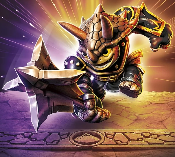 Long before he became a Sensei, Tri-Tip wandered Skylands searching for the mythical Warping Walnut Tree, rumored to never be at the same place long before moving to a new location. After many years, he found the tree - and just before it vanished once again, he took from it a Golden Walnut, which was said to reveal life’s purpose to those who could open it. But to his dismay, the enchanted walnut could not be cracked no matter how hard he struck it with his thick head. Realizing that only a weapon of immense power could crack the magical shell, and not his head, Tri-Tip forged a mighty mace and trained with the greatest warriors to become the ultimate Master of Smashing. But on the day when he was finally ready to open the shell, he paused. It was then that Tri-Tip realized his true purpose – one that the unopened walnut had been teaching him all along. His purpose in life was to use his skills to protect Skylands. He then gifted the unopened walnut to one of his students and left to join the Skylanders.